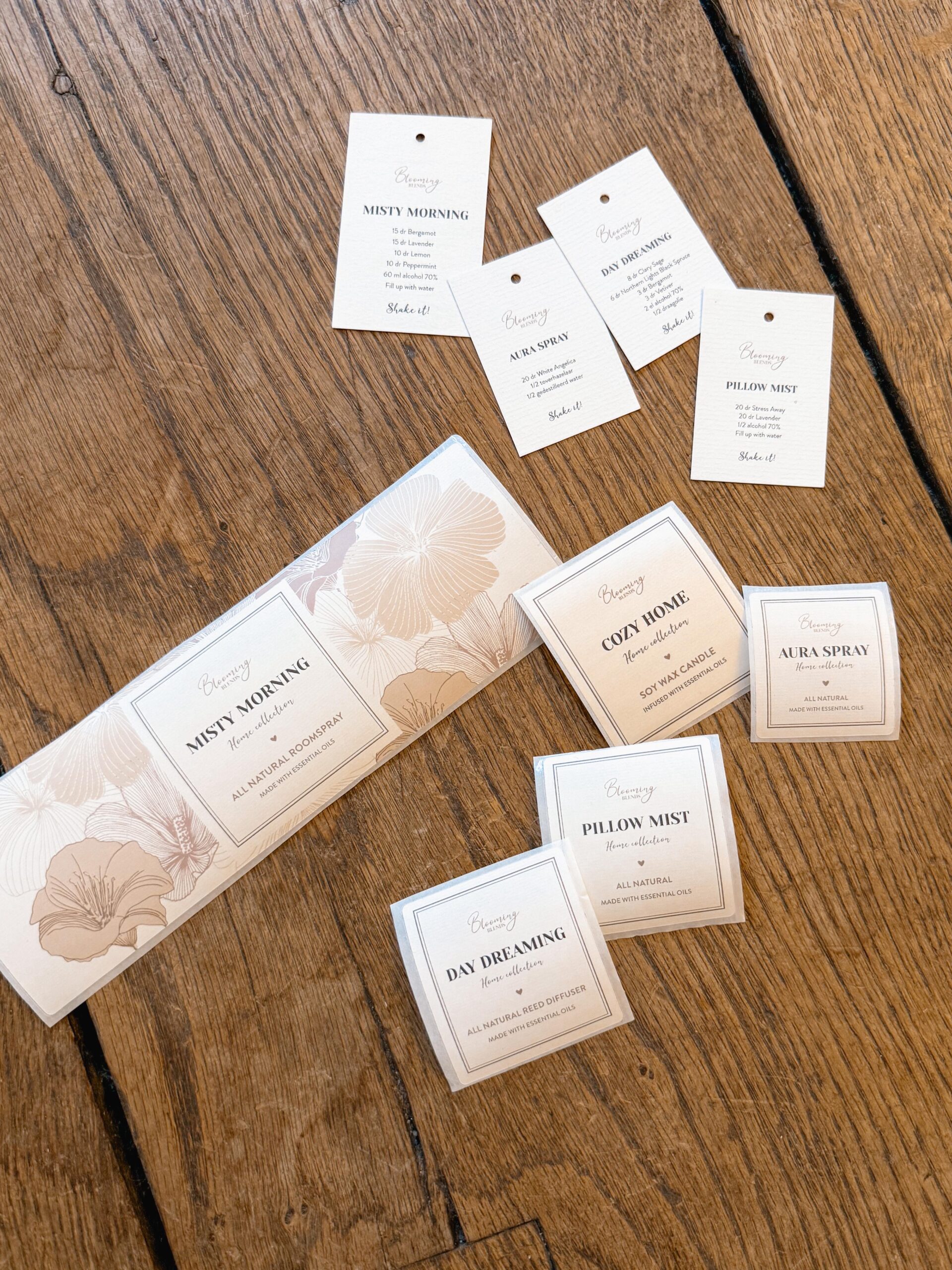 Deze Home Collection Labels zijn een musthave om jouw favoriete sprayflessen mee op te pimpen. Inclusief recepten om direct mee aan de slag te gaan. Maak heerlijke roomspray, daydream, pillow mist, aura spray en mistymorning!