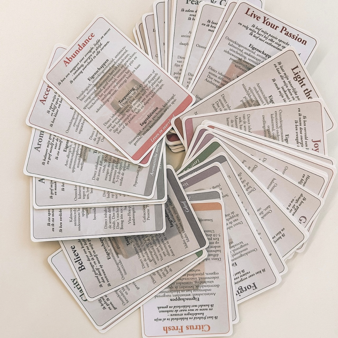 Laat je elke dag liefdevol begeleiden door de kracht van essentiële oliën. Dit prachtige kaartendeck bevat 40 kaarten met zorgvuldig samengestelde oliemelanges van Young Living. Denk aan Joy, Valor, Abundance, Peace & Calming, Thieves, Dream Catcher en vele anderen, elk met een eigen energie en boodschap.